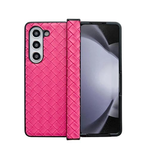 Estuche plegable para Samsung Galaxy Z Fold5 PU textura tejida juego de tres piezas (Rojo Rosa)