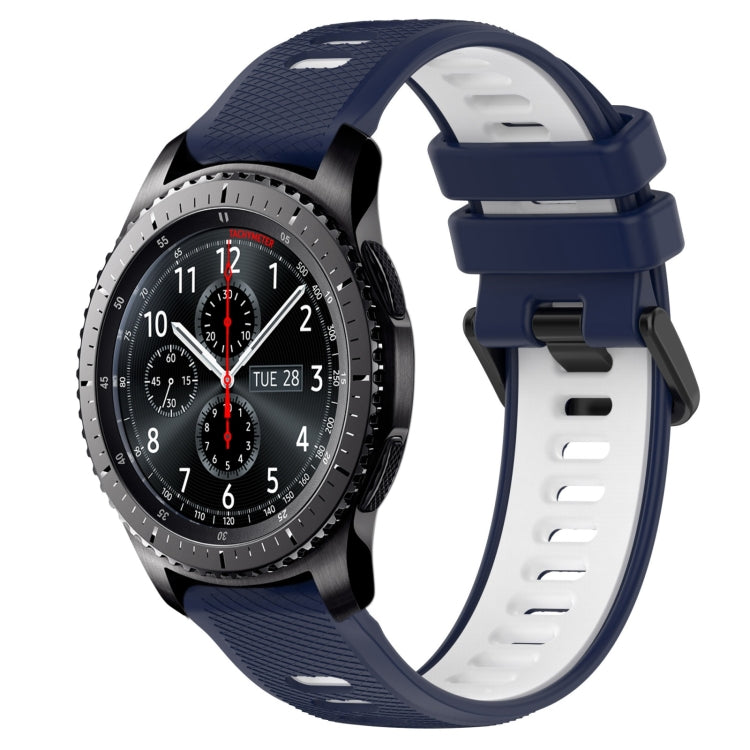 Pulsera para Samsung Gear S3 Frontier 22mm Sports Silicona Bicolor (Azul Medianoche + Blanco)