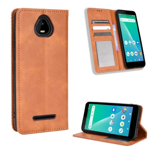 Funda Telefónica Schok Volt Sv55 / Sv55216 Hebilla Magnética Cuero Textura Retro (Marrón)