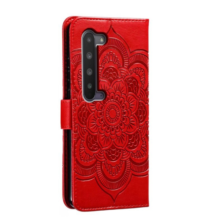 Funda de Cuero para Sharp Aquos R5G Sun Mandala con Patrón en Relieve (Rojo)