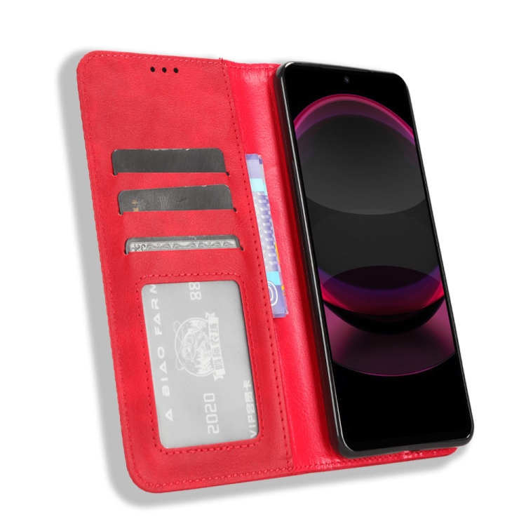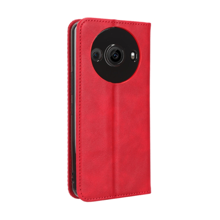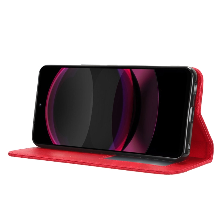 Funda para Sharp Aquos R8 Pro de Cuero con Textura Retro y Hebilla Magnética (Rojo)