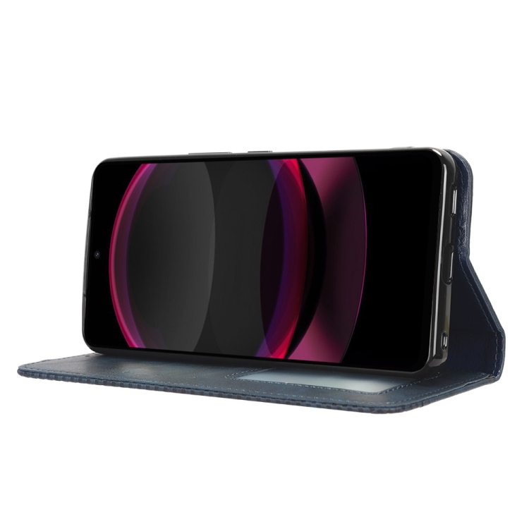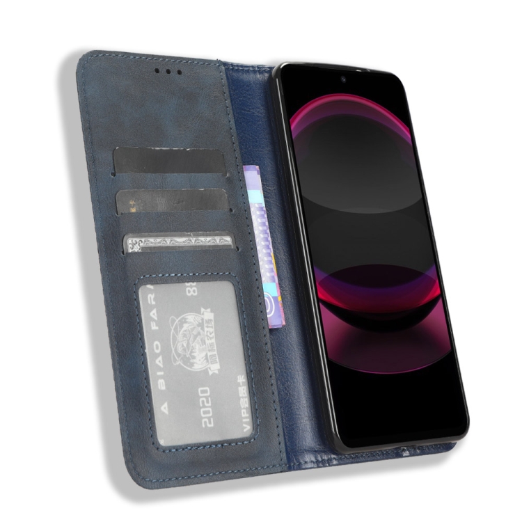 Funda de Cuero para Sharp Aquos R8 Pro con Hebilla Magnética y Textura Retro (Azul)