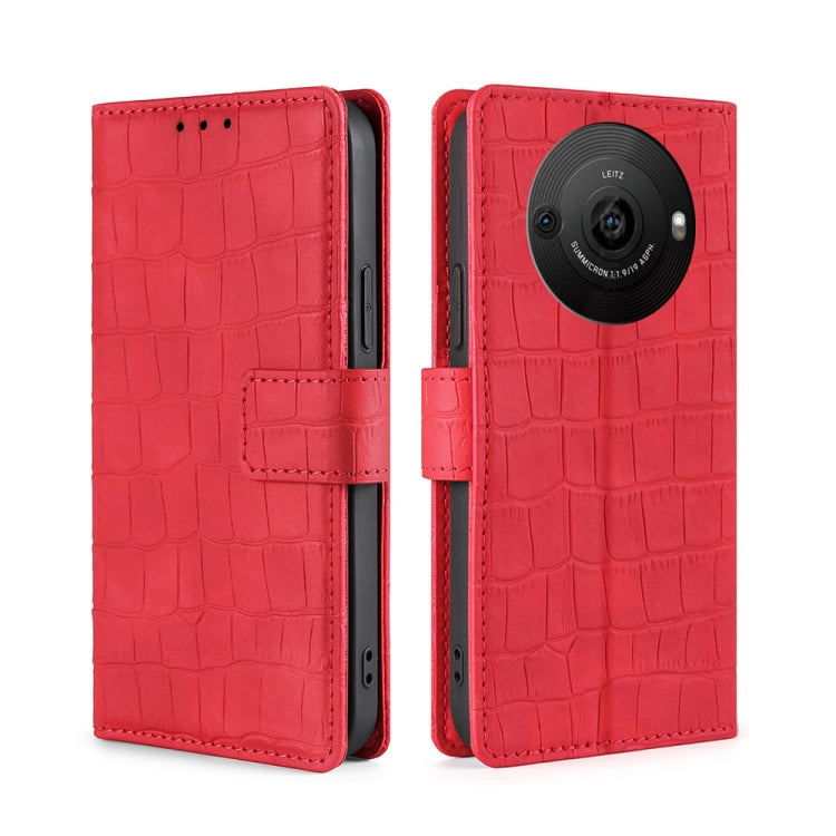 Funda de Cuero para Sharp Aquos R8 Pro Sh-51 Skin Feel Cocodrilo con Cierre Magnético (Rojo)