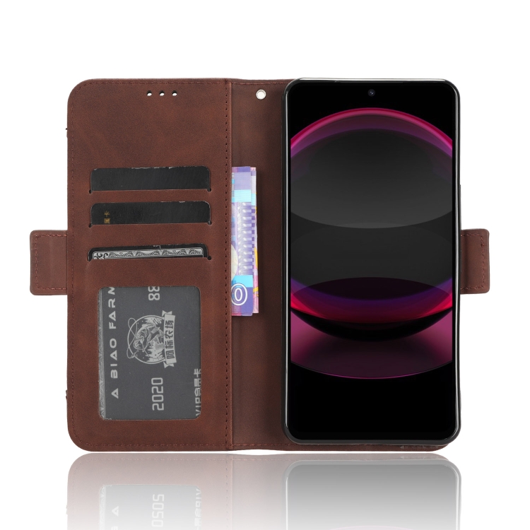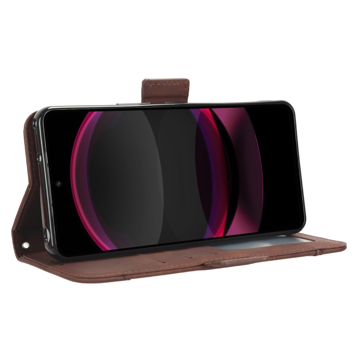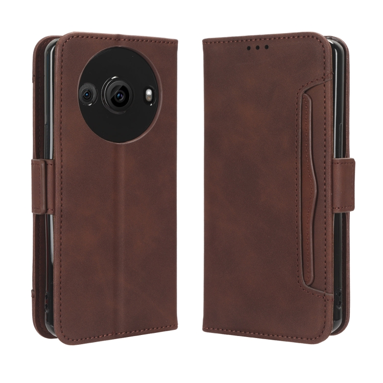 Funda de Cuero para Sharp Aquos R8 Pro con Textura Skin Feel y Ranuras para Tarjetas (Marrón)
