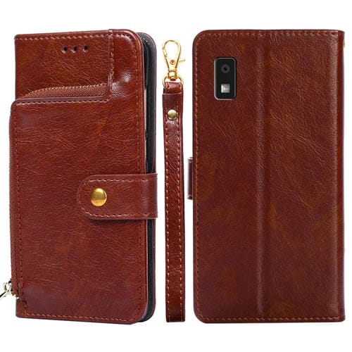 Funda de Cuero con Cremallera para Sharp Aquos Wish 3 (Marrón)