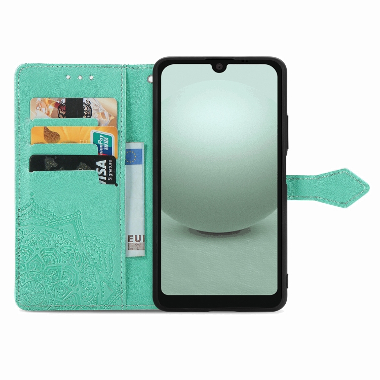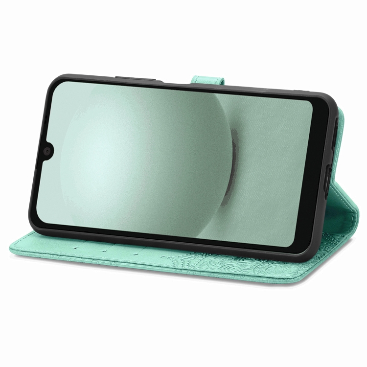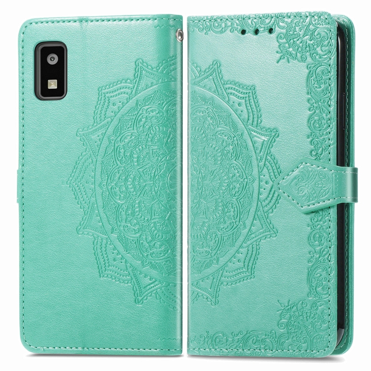 Funda de Cuero para Sharp Aquos Wish 3 Mandala Flower en Relieve (Verde)