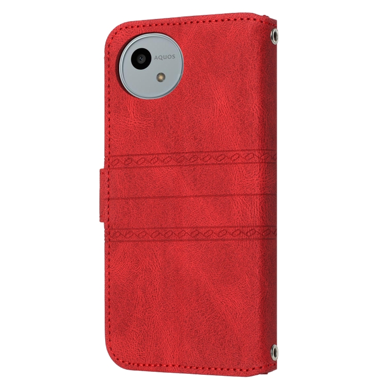Funda de Cuero para Sharp Aquos Wish 4 con Sensación de Piel y Rayas en Relieve (Rojo)