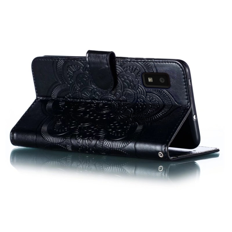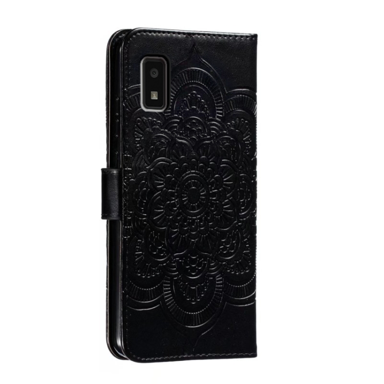 Funda de Cuero para Sharp Aquos Wish con Patrón En Relieve Sun Mandala (Negro)