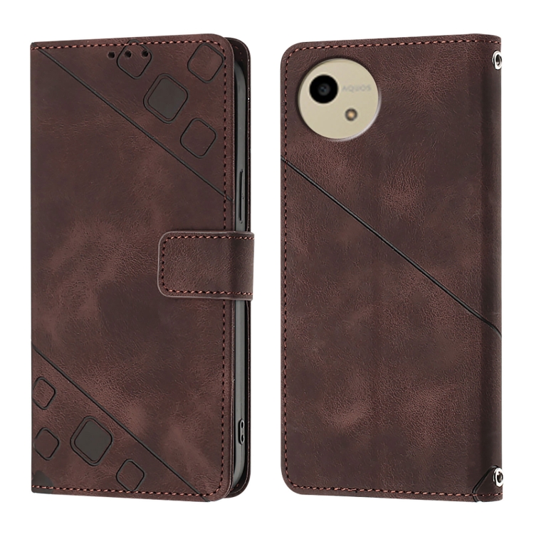 Funda de Cuero para Sharp Aquos Wish4 Skin Feel en Relieve (Marrón)