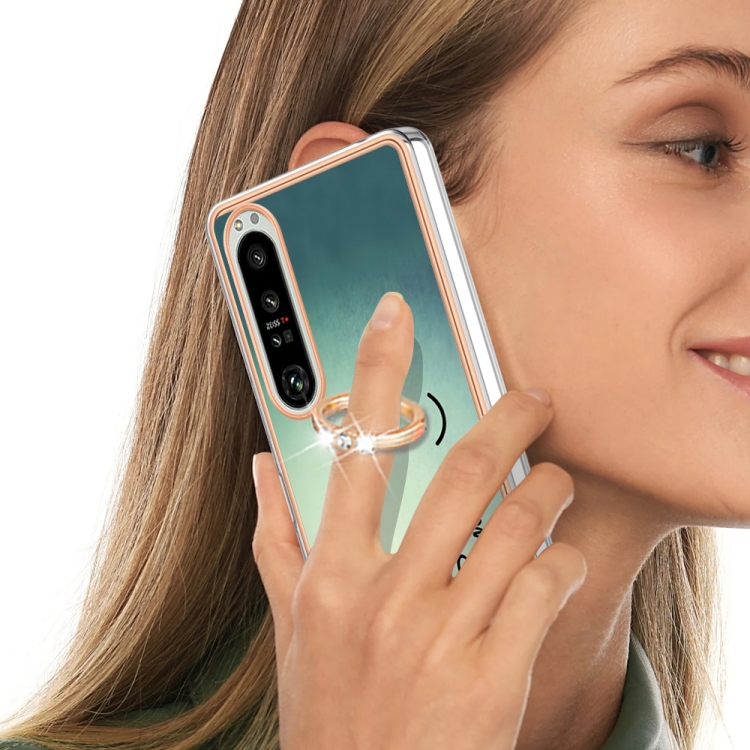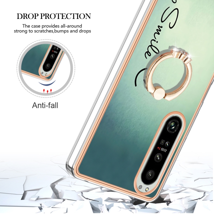 Funda para Sony Xperia 1 IV Galvanoplastia IMD Doble Cara con Soporte para Anillo (Sonrisa)