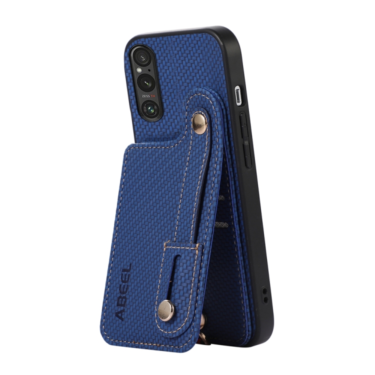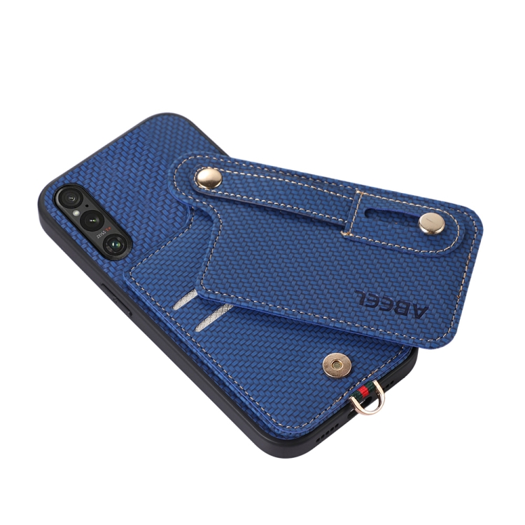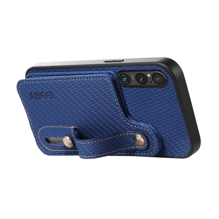 Funda para Sony Xperia 1 V Abeel con Tarjetero RFID de Fibra de Carbono (Azul)