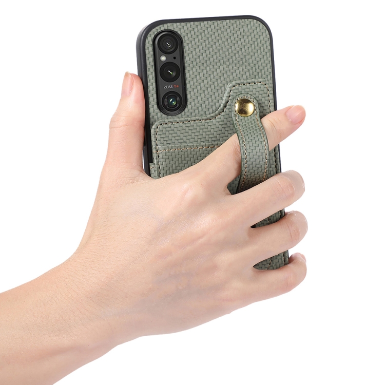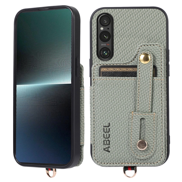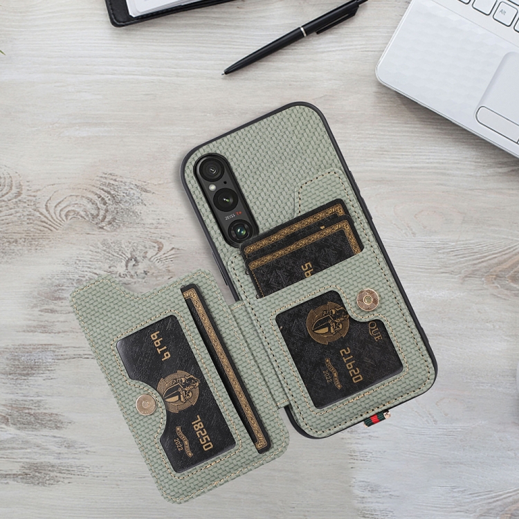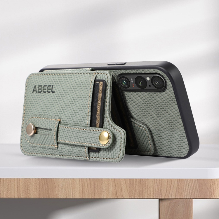 Funda para Sony Xperia 1 V Abeel con Tarjetero RFID de Fibra de Carbono (Verde)