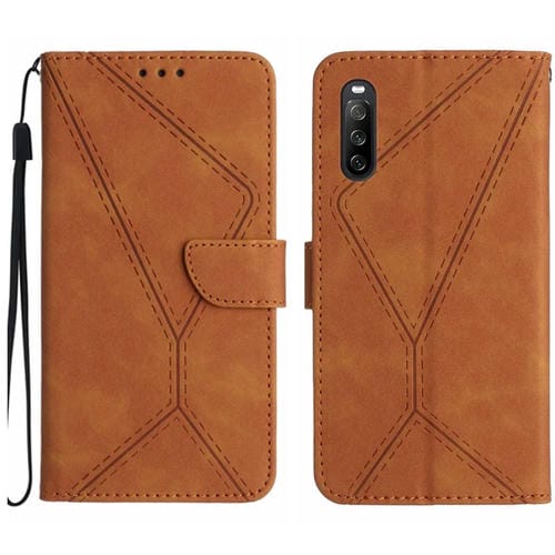 Estuche para Sony Xperia 10 IV de Cuero con Costuras en Relieve (Marrón)