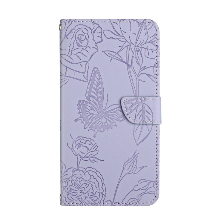Funda de Cuero para Sony Xperia 5 V Ht03 Skin Feel Butterfly con Tapa en Relieve (Púrpura)