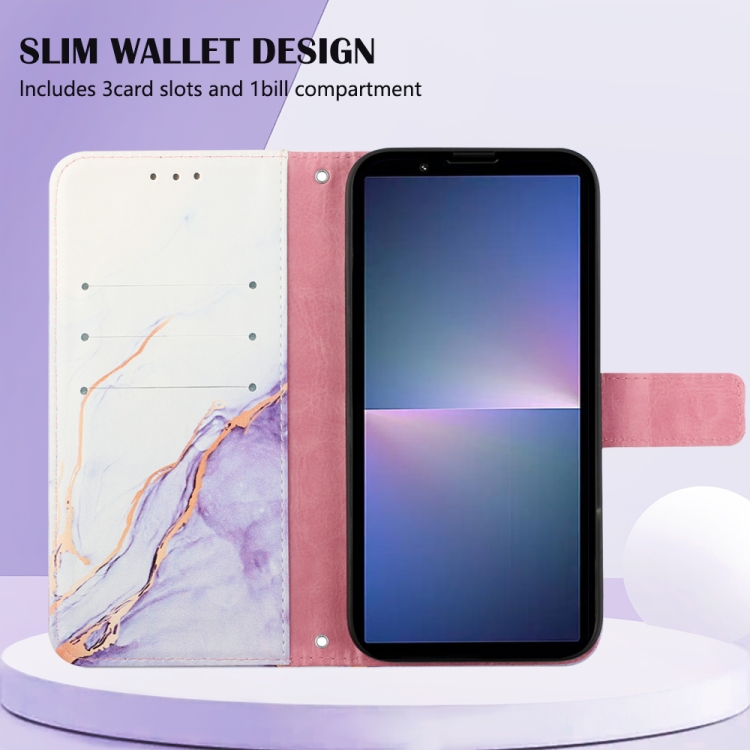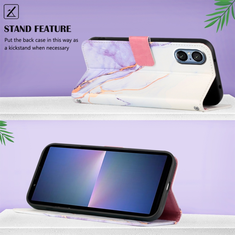 Funda de Cuero para Sony Xperia 5 V Pt003 con Tapa y Patrón Mármol (Blanco Púrpura)