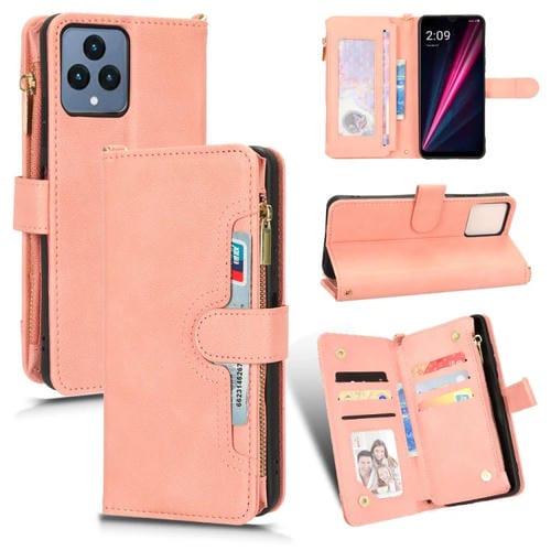 Funda de Cuero con Cremallera para T-Mobile Revvl 6 5G Litchi Texture (Rosa)