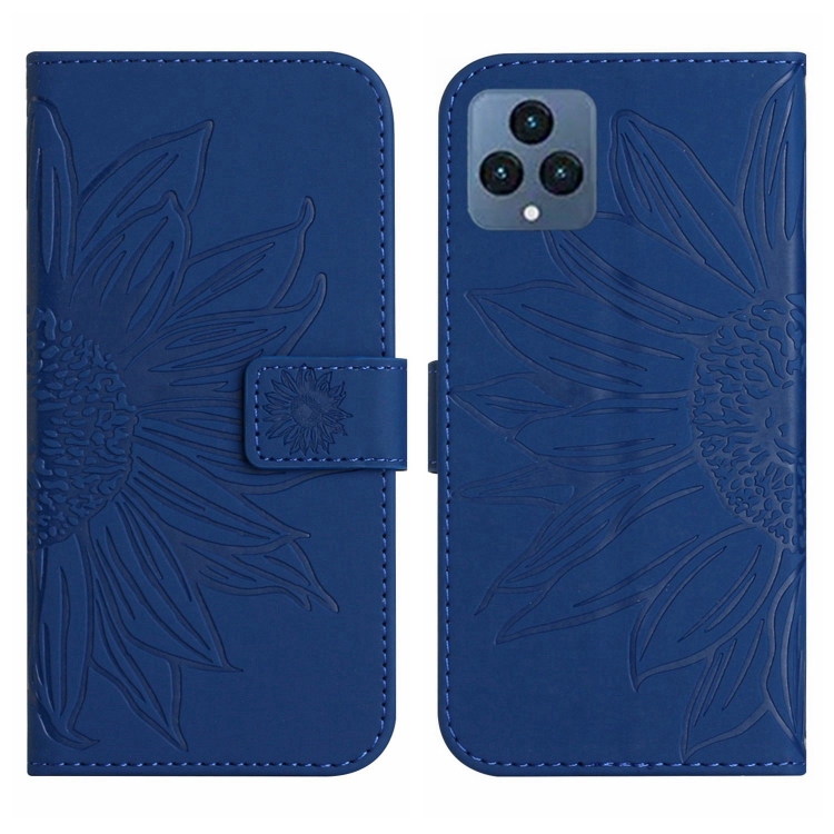 Funda Flip de Cuero para T-Mobile Revvl 6 5G con Cordón y Diseño Sun Flower (Azul Oscuro)