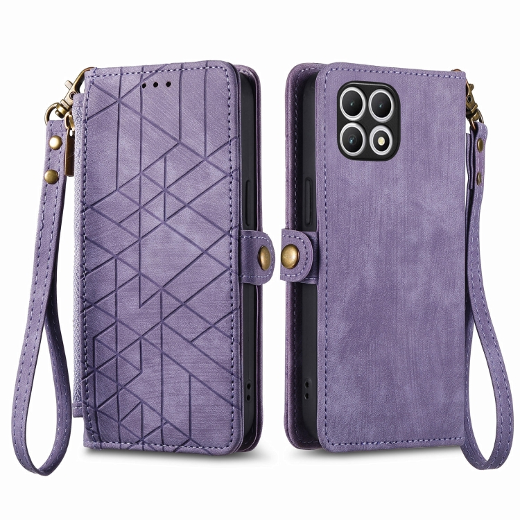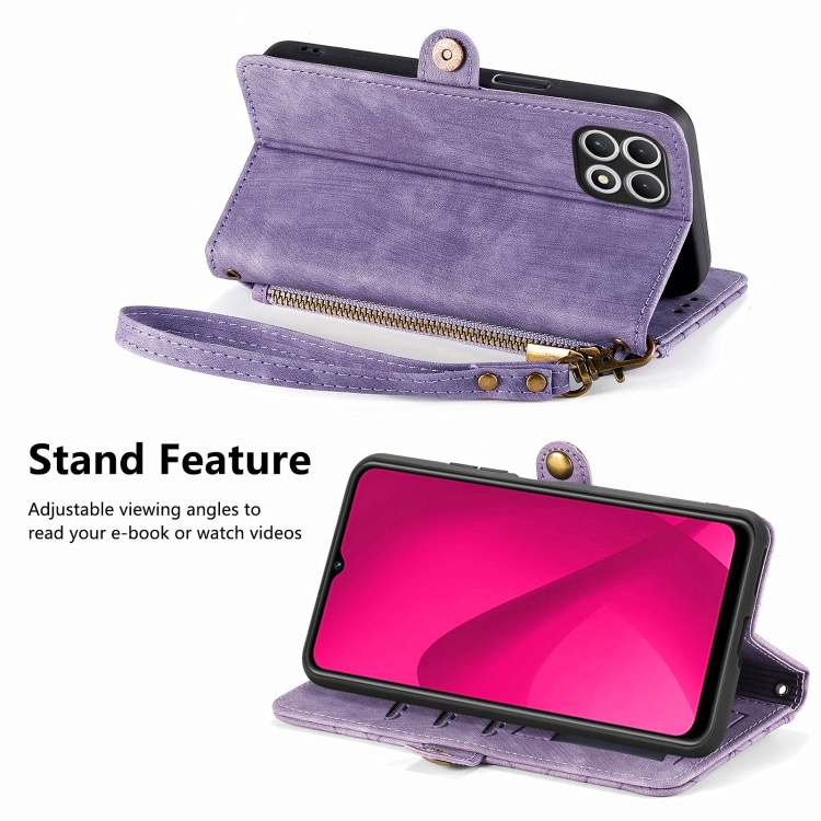 Funda de Cuero para T-Mobile T Phone 2 5G con Hebilla y Billetera Geométrica (Púrpura)