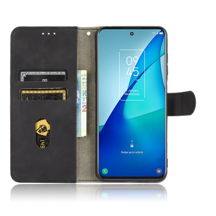 Funda de Cuero PU para TCL 20S con Hebilla Magnética, Soporte, Tragamonedas y Billetera (Negro)