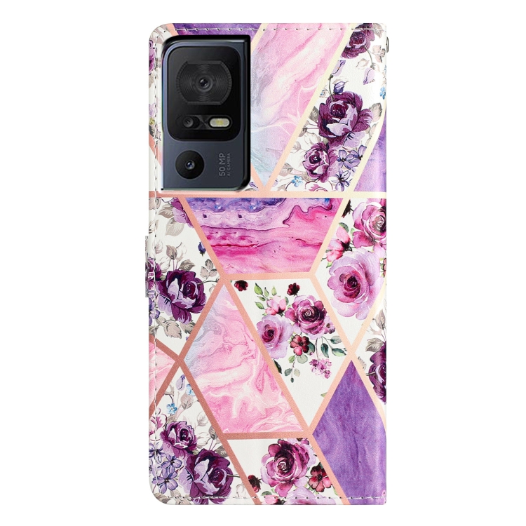 Funda de Cuero para TCL 40 Se con Dibujo Coloreado Mármol (Púrpura)
