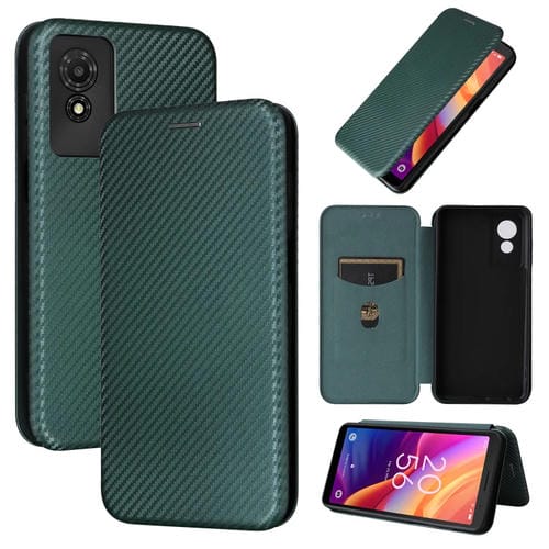 Funda de Cuero para TCL 501 con Tapa y Textura de Fibra de Carbono (Verde)