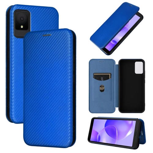 Funda de Cuero para TCL 502 con Tapa y Textura de Fibra de Carbono (Azul)