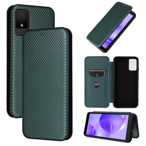 Funda de Cuero para TCL 502 con Tapa y Textura de Fibra de Carbono (Verde)