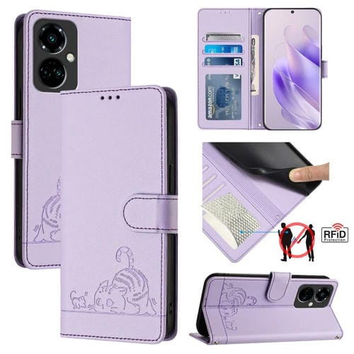 Funda para Tecno Camon 19 Pro 5G de Cuero Rfid con Patrón en Relieve y Cordón (Púrpura)