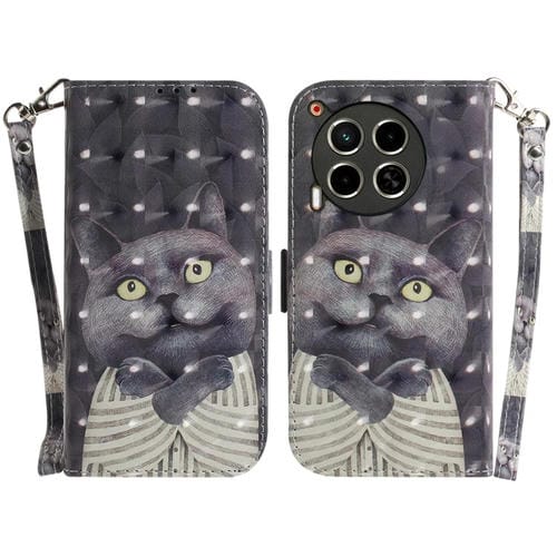 Funda de Cuero para Tecno Camon 30 5G / 30 4G Cl6 Cl7 con Tapa Horizontal 3D (Hug Cat)