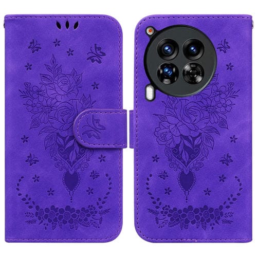 Funda de Cuero para Tecno Camon 30 Premier 5G Butterfly Rose en Relieve (Púrpura)
