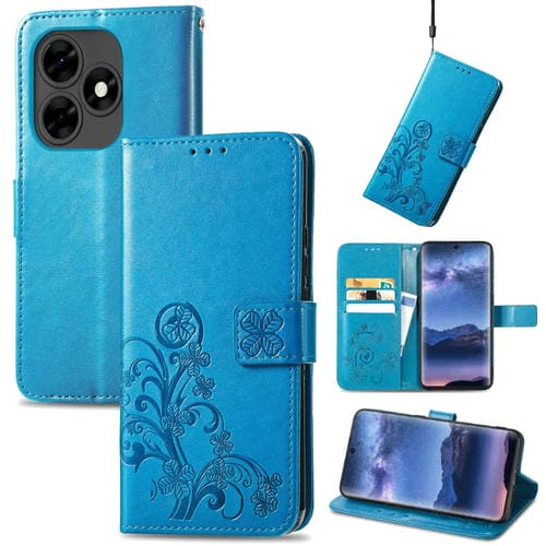 Funda para Teléfono + Tecno Itel S23 + Cuero + Hebilla en Relieve + Cierre de Cuatro Hojas (Azul)