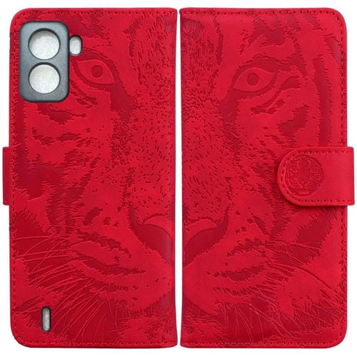 Funda de Cuero para Tecno Pop 6 con Tapa Horizontal y Patrón Tiger Embossing (Rojo)