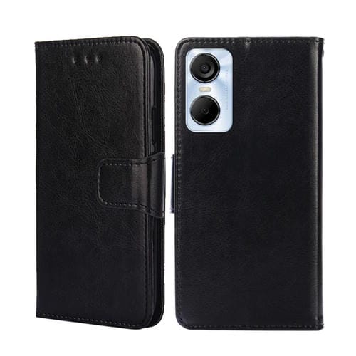 Funda de Cuero para Tecno Pop 6 Pro con Textura de Cristal (Negro)