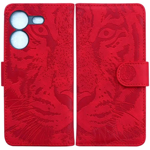 Funda de Cuero Flip para Tecno Pova 5 Tiger con Patrón Embossing (Rojo)