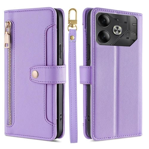Funda de Cuero para Tecno Pova 6 5G con Billetera y Cremallera (Púrpura)