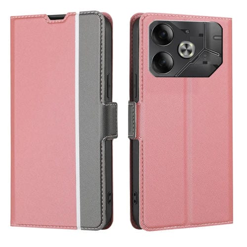 Funda de Cuero para Tecno Pova 6 5G con Botón Lateral y Textura de Sarga (Rosa)