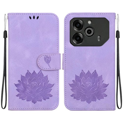 Funda de Cuero para Tecno Pova 6 y Pova 6 Pro con Relieve de Loto (Púrpura)