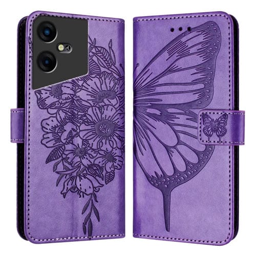 Funda de Cuero para Tecno Pova Neo 3 con Mariposa en Relieve (Púrpura Claro)