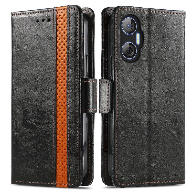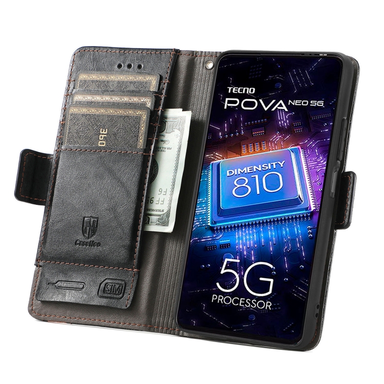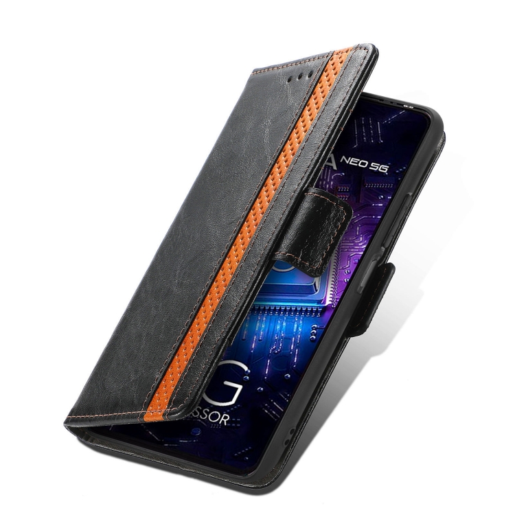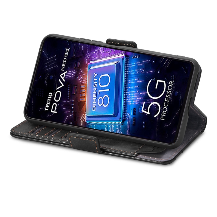 Funda de Cuero para Tecno Pova Neo 5G Caseneo Splicing Dual Magnetic con Hebilla (Negro)