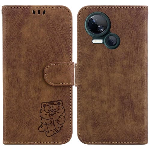 Funda de Cuero para Tecno Spark 10 5G Little Tiger en Relieve para Teléfono (Marrón)