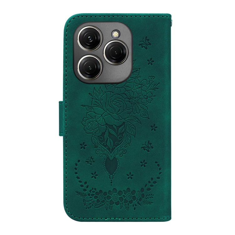 Funda de Cuero para Tecno Spark 20 Pro Butterfly Rose en Relieve (Verde)
