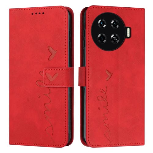 Funda para Tecno Spark 20 Pro Skin Feel Heart Cuero En Relieve con Cordón Largo (Rojo)
