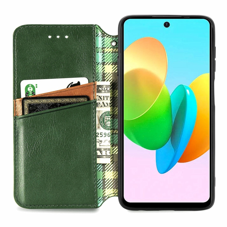 Funda de Cuero Magnético para Tecno Spark 20C 4G Cubic Grid (Verde)