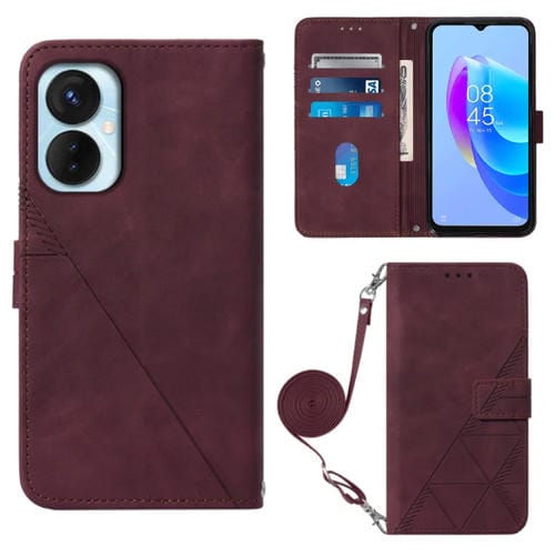 Funda de Cuero con Tapa para Tecno Spark 9 Pro y Spark 9T Crossbody 3D (Rojo Vino)