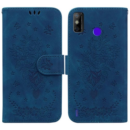 Funda para Tecno Spark Go 2022 / Spark 6 Go Butterfly Rose Foothip en Cuero (Azul)