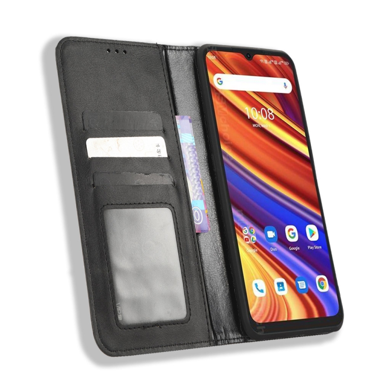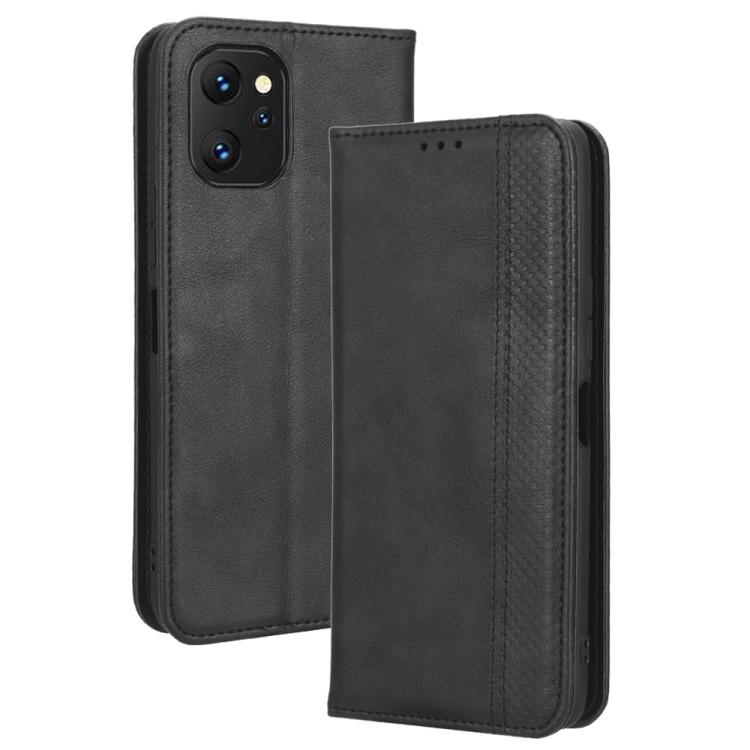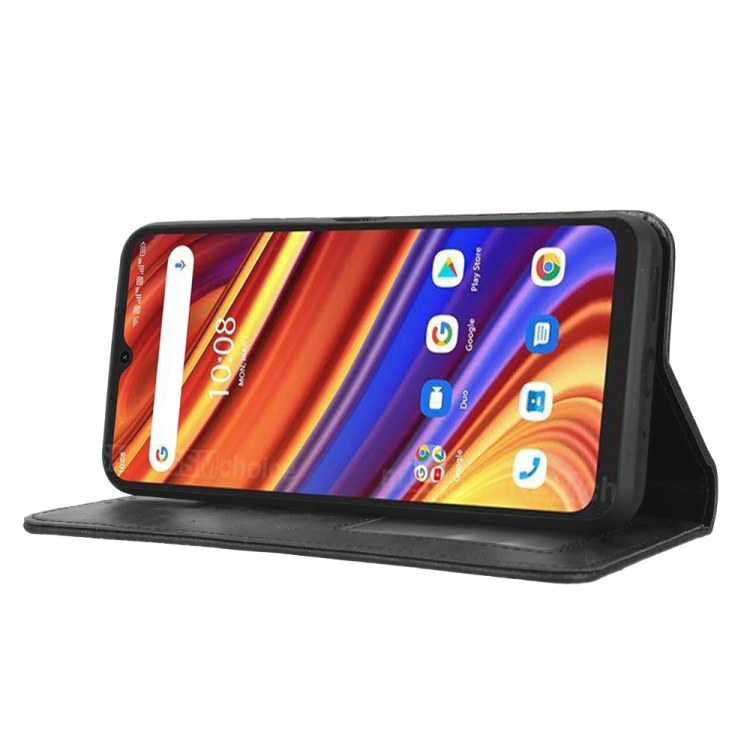 Funda de Cuero para Umidigi Power 7 Max con Hebilla Magnética y Textura Retro (Negro)