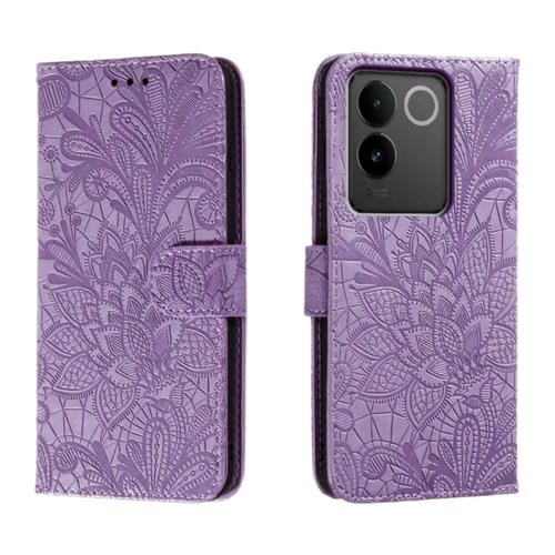 Para Vivo S17E Funda para Teléfono de Cuero con Tapa y Estampado de Flores de Encaje (Púrpura)