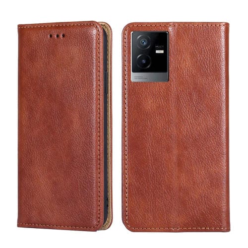 Para Vivo T2X 5G/Y73T/Iqoo Z6X Estuche para Teléfono de Cuero Magnético de Color Sólido con Aceite Brillante (Marrón)