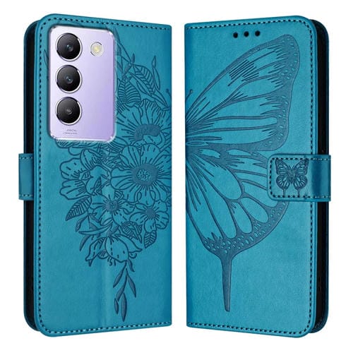 Para Vivo Y100 5G Idn / Y200E 5G Funda para Teléfono de Cuero con Mariposa En Relieve Global (Azul)