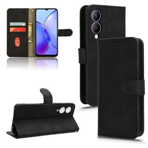 Para Vivo Y17S 4G Skin Feel Funda de Cuero con Tapa Magnética para Teléfono (Negro)